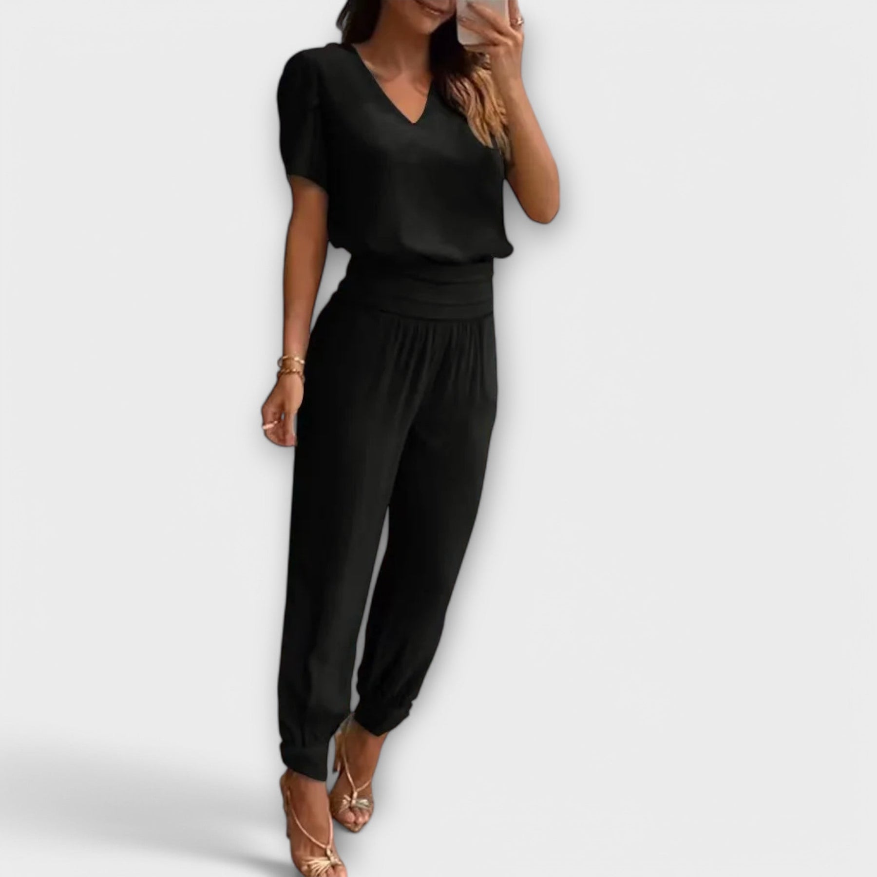 Das Irmelin – Elegante Set mit Oberteil und Hose vereint modernes Design mit höchstem Tragekomfort. Die schmeichelhafte Passform betont die Figur, während hochwertige Materialien ein angenehmes Tragegefühl bieten. Ob für einen entspannten Stadtbummel oder ein formelles Meeting – dieses Set ist die perfekte Wahl für vielseitige Looks.